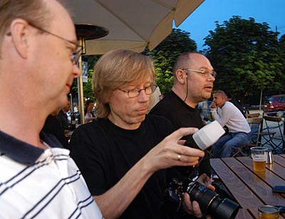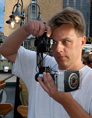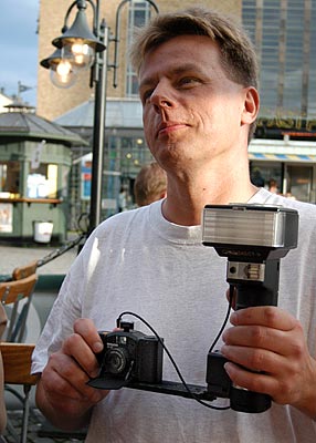 Janne tittar skeptiskt på en blixt han blivit påtvingad av P-O.