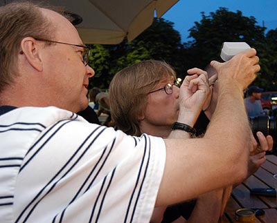 Grannsällskapet vid bordet fick mycket roligt åt duellen,