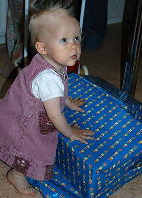 -Kolla här ligger det ju ett jättestort paket till mig!! Det vill