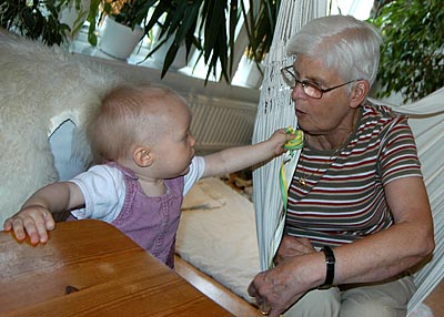 Nettis berättar om sin ballong för tant Ingrid.