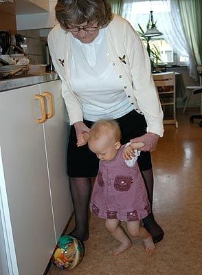-Hjälp mig här nu, mormor! Jag ska göra mål!