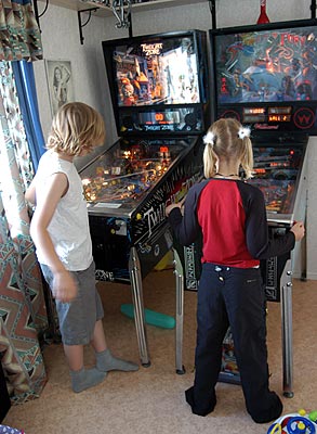 Zacharias och Rebecka spelar flipper.