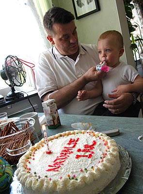 Emil blåser en födelsedags-salut!